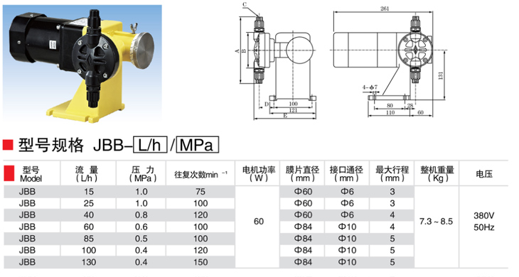 產品名稱:JBB型機械隔膜式計量泵